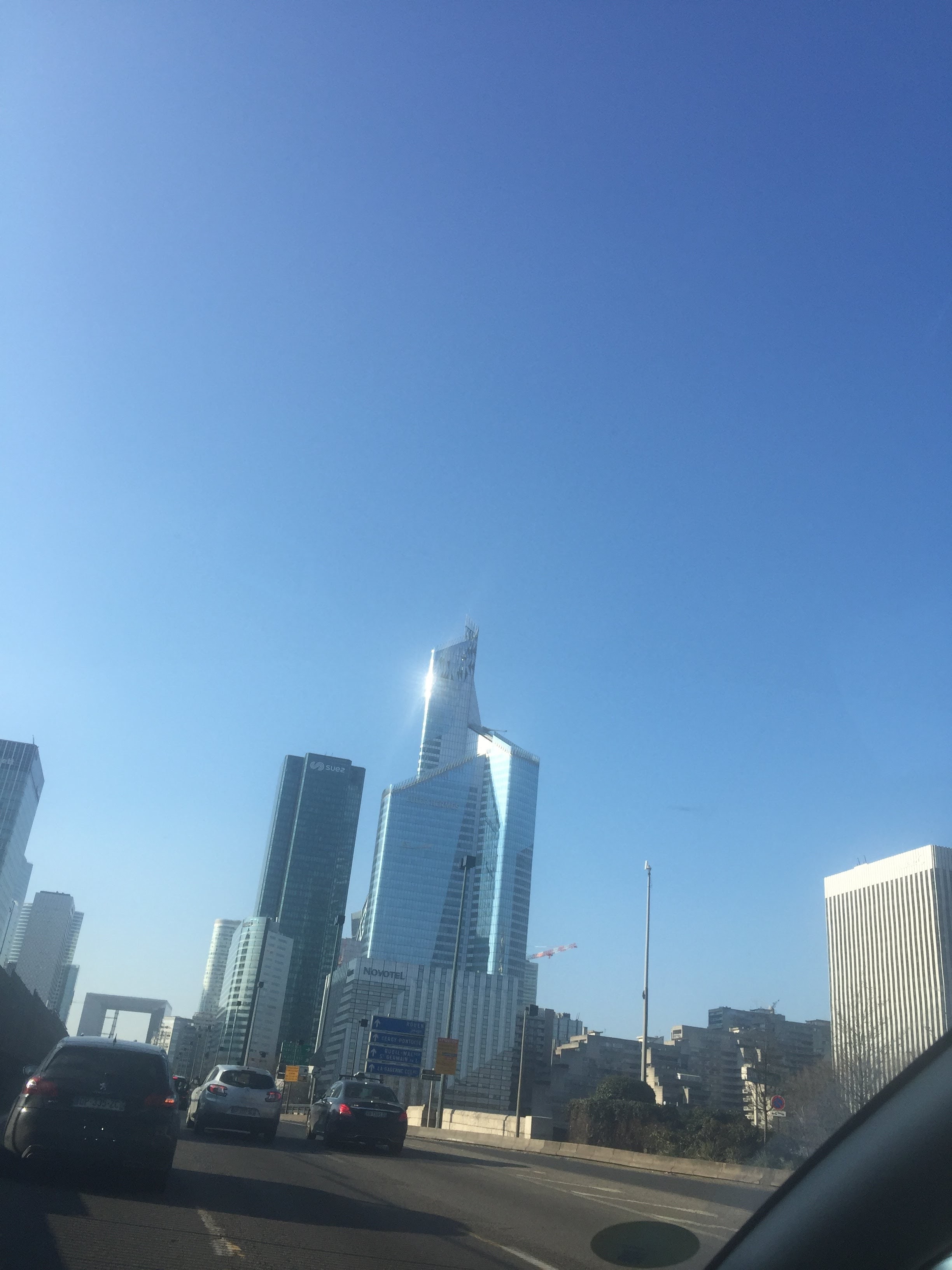Photos globales de la Defense avec la nouvelle tour TRINITY par cette apres midi enfin un peu ensoleillée.