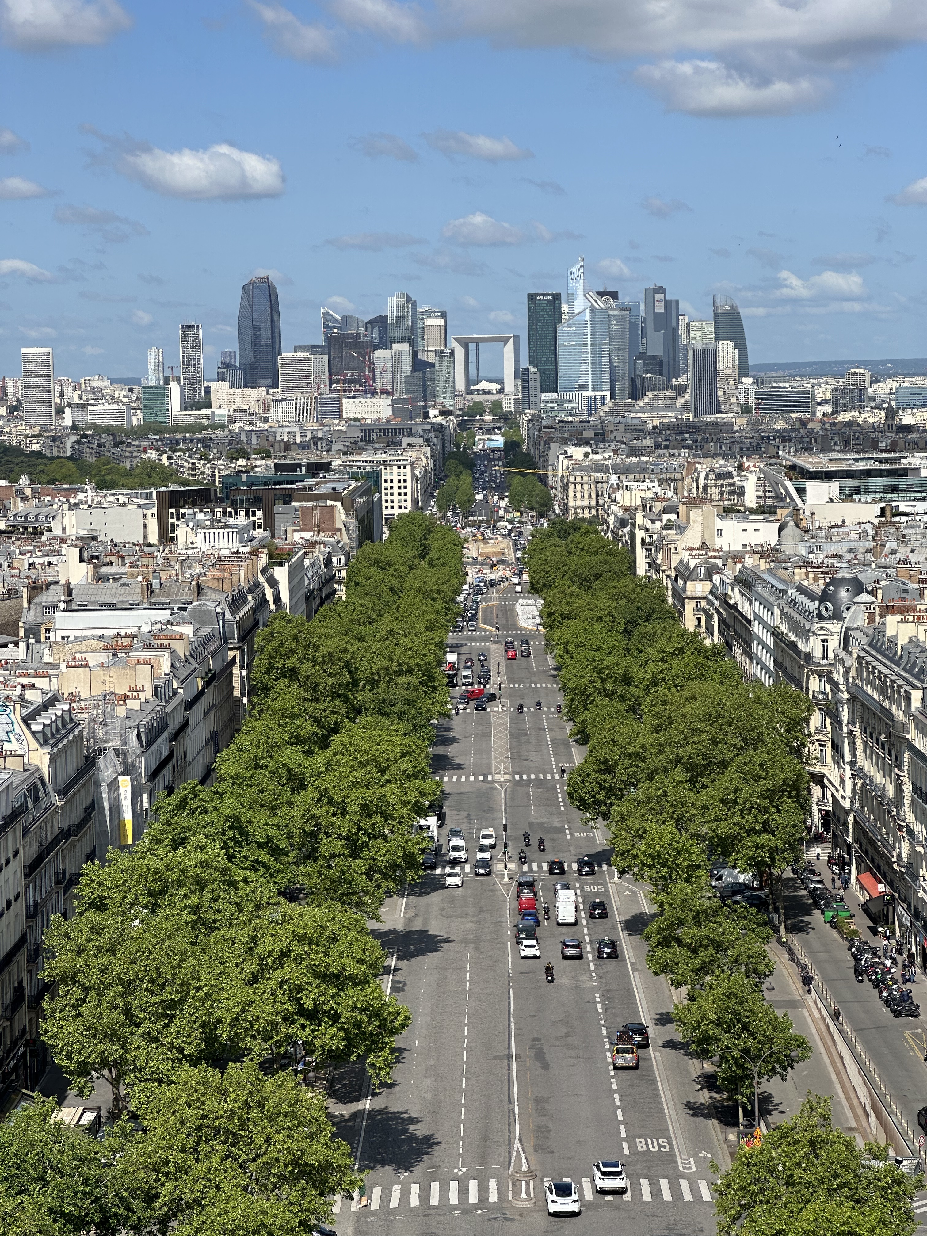 Belle vue en haut de l'arche, beaucoup de magasin, poste de police à proximité, des transport en commun à proximité, patrouille de police et de militaire. Rien à dire sur l'endroit, sympa pour aller se balader rapidement ou pour aller faire les magasins